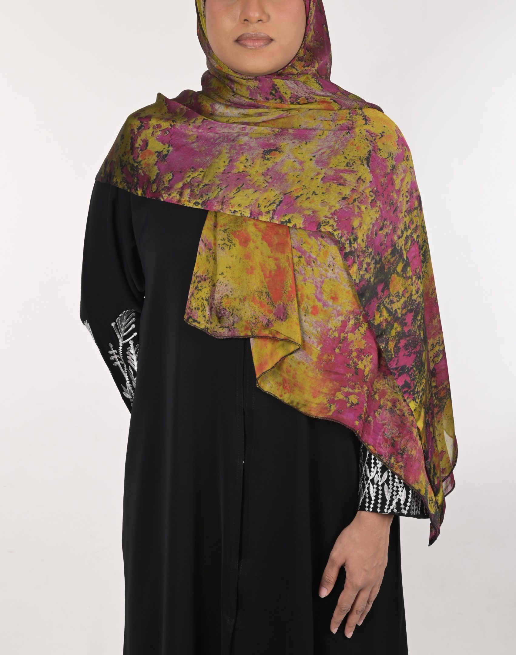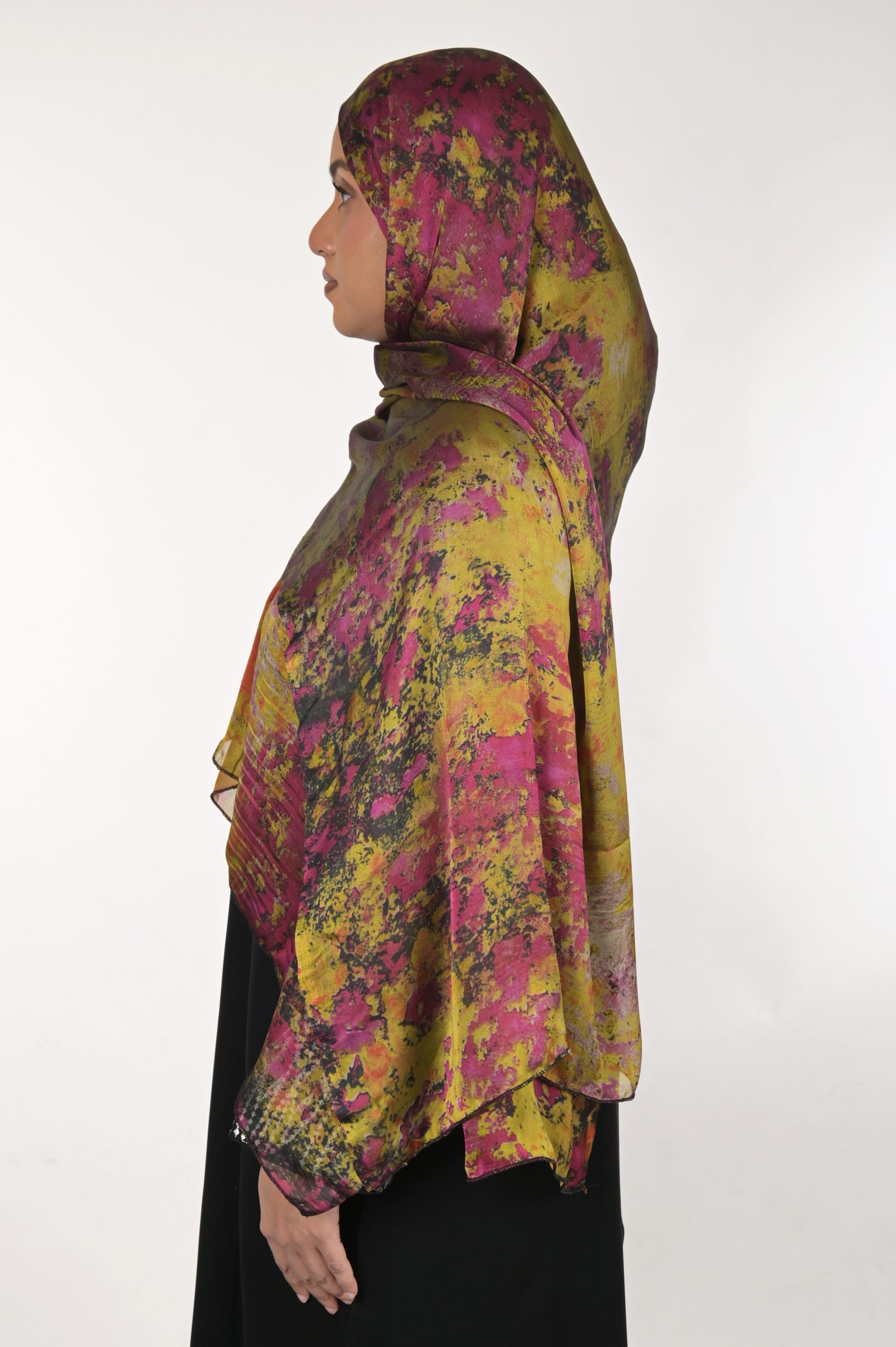 Elevate your wardrobe with this stunning hijab featuring a unique abstract print in earthy tones. The lightweight, breathable fabric ensures all-day comfort while the versatile design is perfect for any occasion, from casual outings to formal events. The intricate blend of colors creates a bold yet sophisticated look, making it a must-have accessory for your collection.